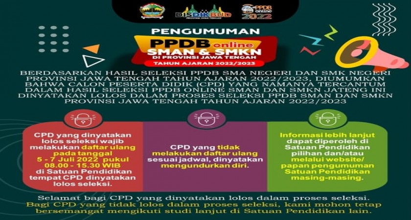 Selamat untuk CPD yang telah diterima di SMA Negeri 5 Purwokerto. Dafta nama CPD yang diterima di di SMA Negeri 5 Purwokerto dapat didownload di sini.